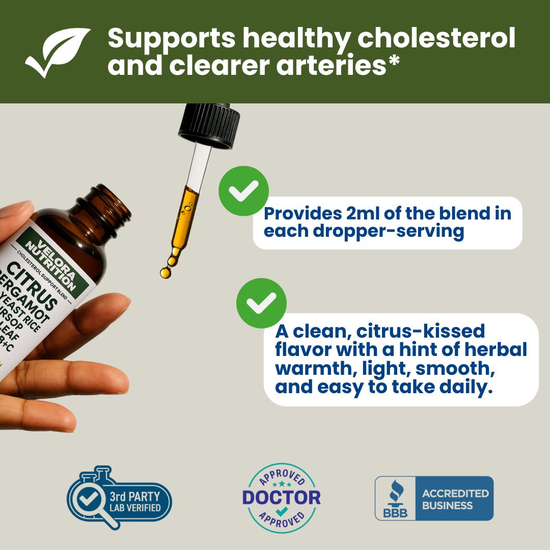 It helps support healthy cholesterol levels using ingredients like red yeast rice, citrus bergamot, and garlic —